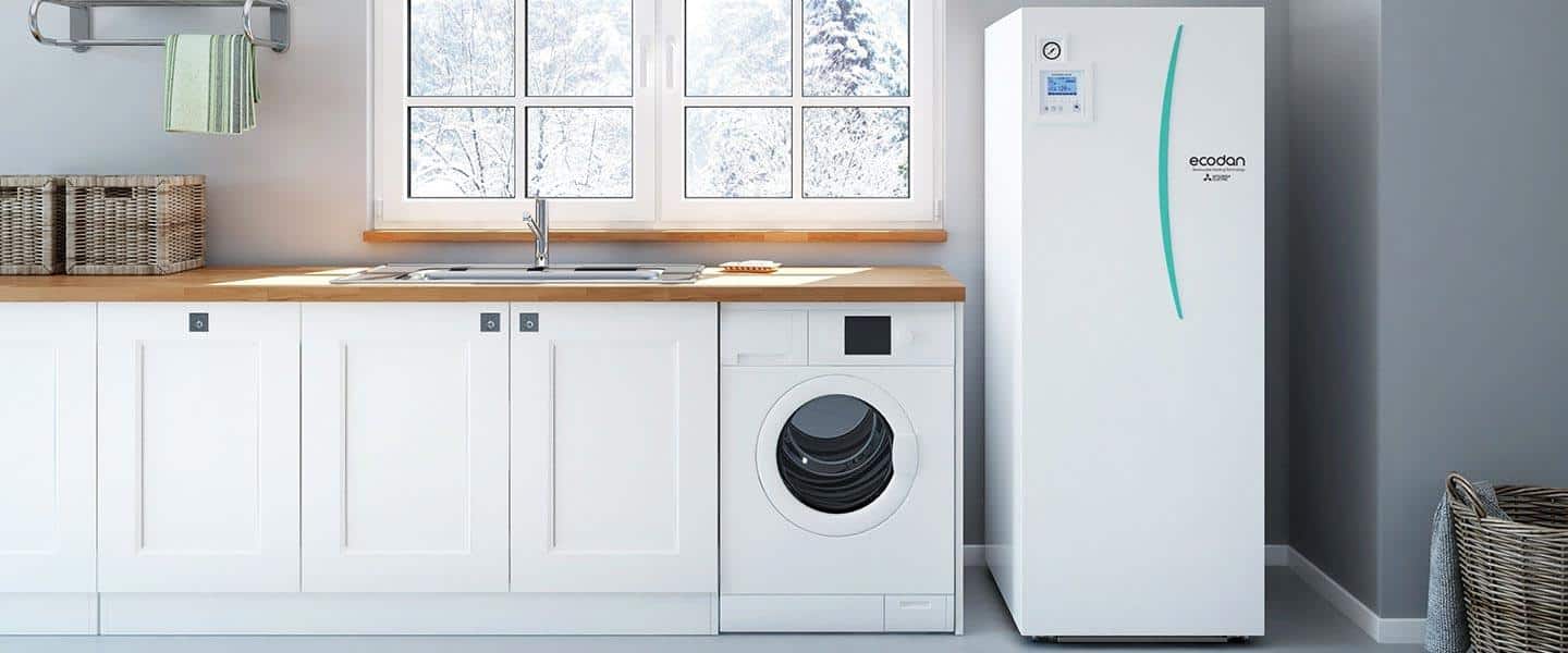 Ecodan hydrobox duo avec ballon ECS performant équipé d’un filtre anti-tartre