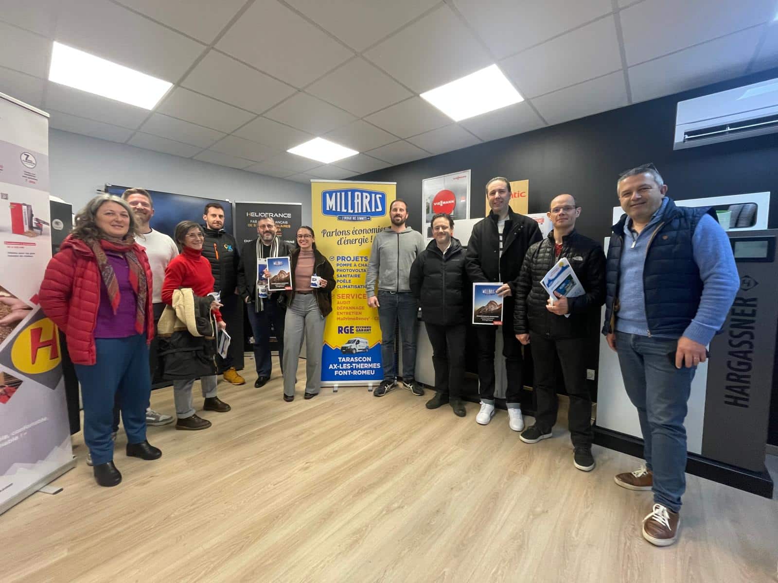 Ce matin Millaris Energies a reçu dans ses locau de Perles-Et-Castelet ses principaux partenaires locaux du développement économique : EDF, réseau 1 rivière 1 territoire, la Communauté de communes de la Haute-Ariège, la Communauté de Communes du Pays de Tarascon, l’office de Tourisme des Pyrénées Ariégeoises, Le dispositif Initiative Ariège et la Mairie d’Ax-Les-thermes entre autres ont participé à la visite de Millaris. Merci à nos convives d’avoir pris le temps de nous rendre visite.